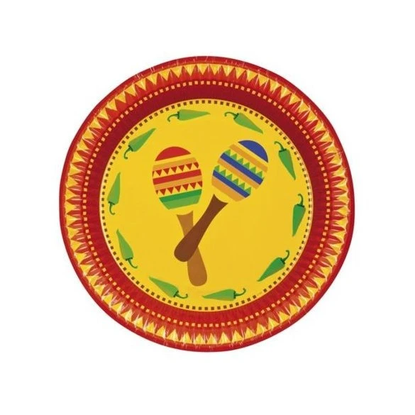 10 Assiettes en carton 23cm décorés de maracas pour vos décos à thème mexique latino