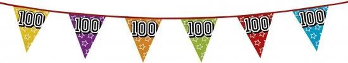 1x paillettes banderoles pour un thème d’anniversaire de 100 ans. Bruant scintillant / drapeaux (holographiques) avec guirlandes de drapeaux de différentes couleurs d’environ 8 mètres de long avec le numéro 100 sur chaque drapeau. Faveurs et décorations de fête d’anniversaire. Matière : plastique. Convient pour l’intérieur et l’extérieur.