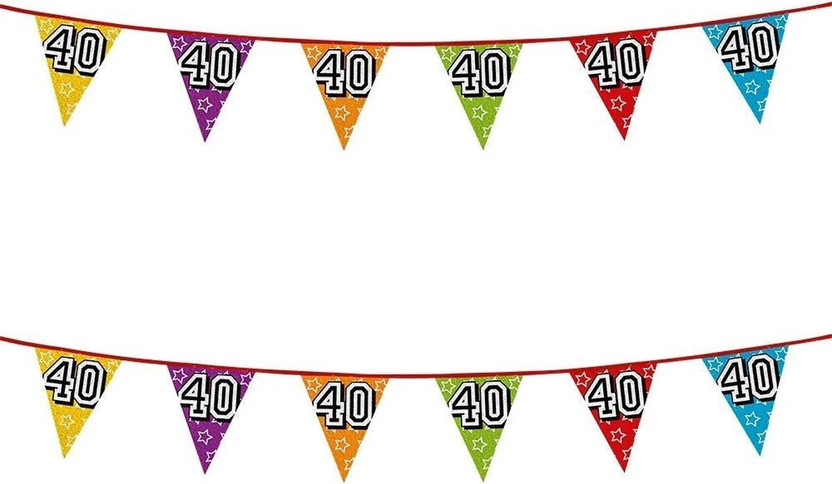 2x paillettes banderoles pour un thème anniversaire de 40 ans. Bruant scintillant / drapeaux (holographiques) avec guirlandes de drapeaux de différentes couleurs d’environ 8 mètres de long avec le numéro 40 sur chaque drapeau. Faveurs et décorations de fête d’anniversaire. Matière : plastique. Convient pour l’intérieur et l’extérieur. Vous recevrez 2 lignes de drapeau de 8 mètres.