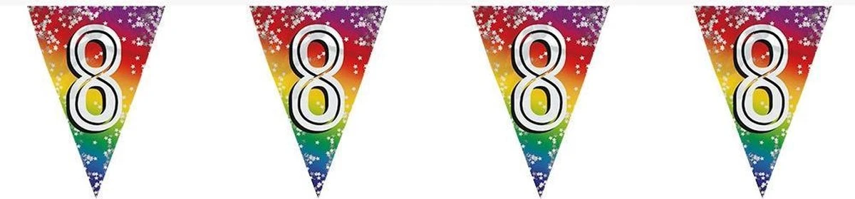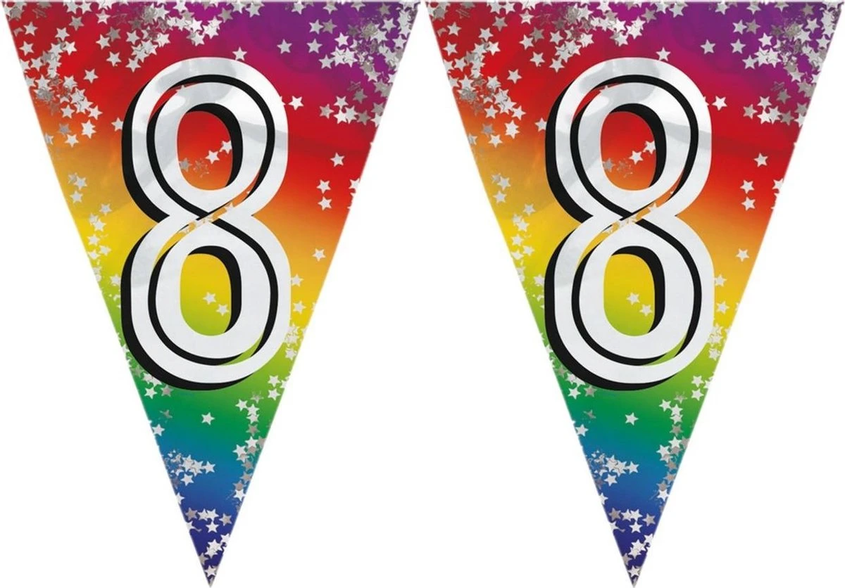 Boland 2x Morceaux De Drapeau Ligne 8 Ans Décoration Guirlande De Drapeaux 6 Mètres – Feuille Glitter – Usage Intérieur / Extérieur