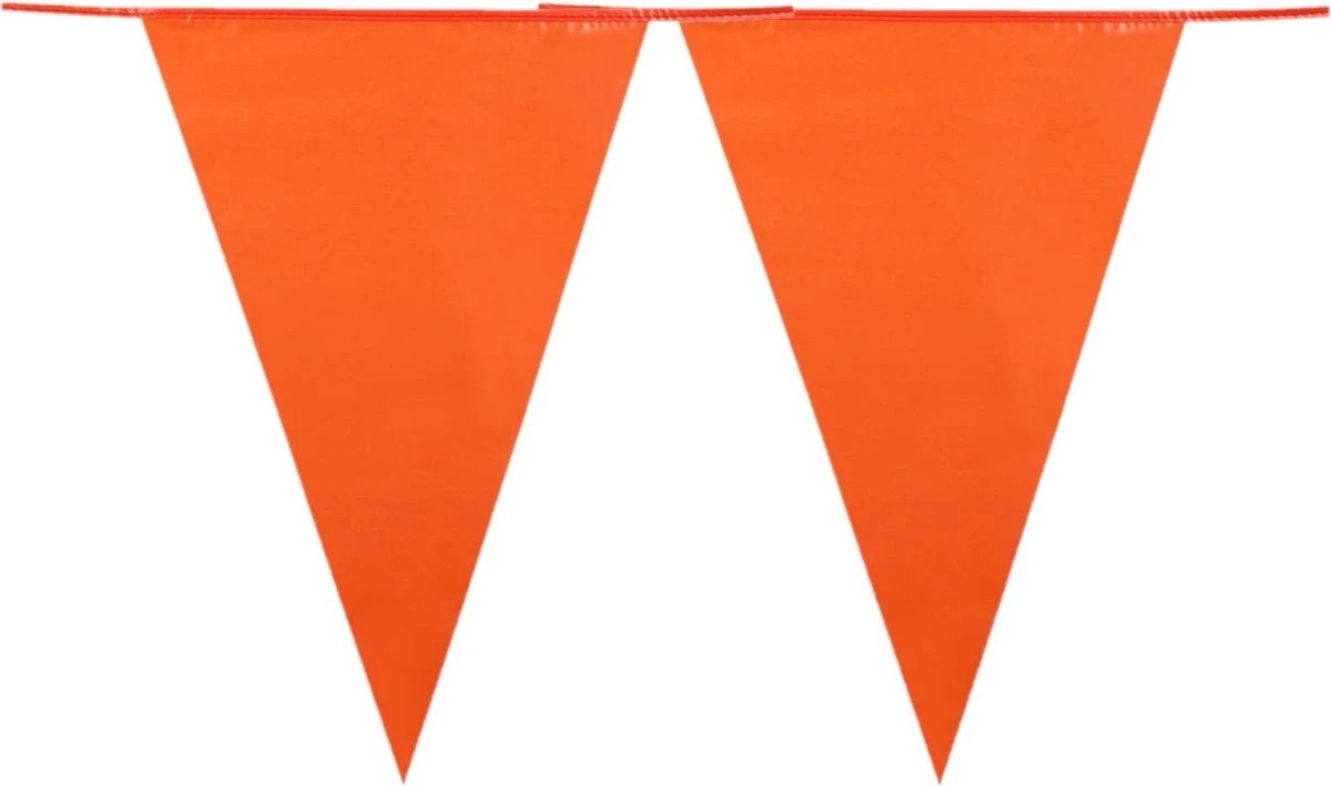 2x morceaux de drapeaux extérieurs en plastique orange Holland grand format de 10 mètres À l’extérieur et à l’intérieur, utilisez des lignes de drapeau. Le jour du roi ou les fournitures de fête des partisans des fans des Nederland/ Holland . Taille du drapeau: 45 x 3 cm. 18 drapeaux par guirlande de drapeau / ligne de drapeau.