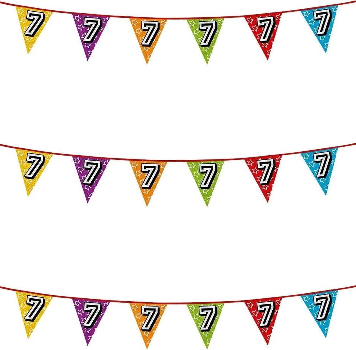 3x paillettes banderoles pour un thème anniversaire de 7 ans. Bruant scintillant / drapeaux (holographiques) avec guirlandes de drapeaux de différentes couleurs d’environ 8 mètres de long avec le numéro 7 sur chaque drapeau. Faveurs et décorations de fête d’anniversaire. Matière : plastique. Convient pour l’intérieur et l’extérieur. Vous recevrez 3 lignes de drapeau de 8 mètres.