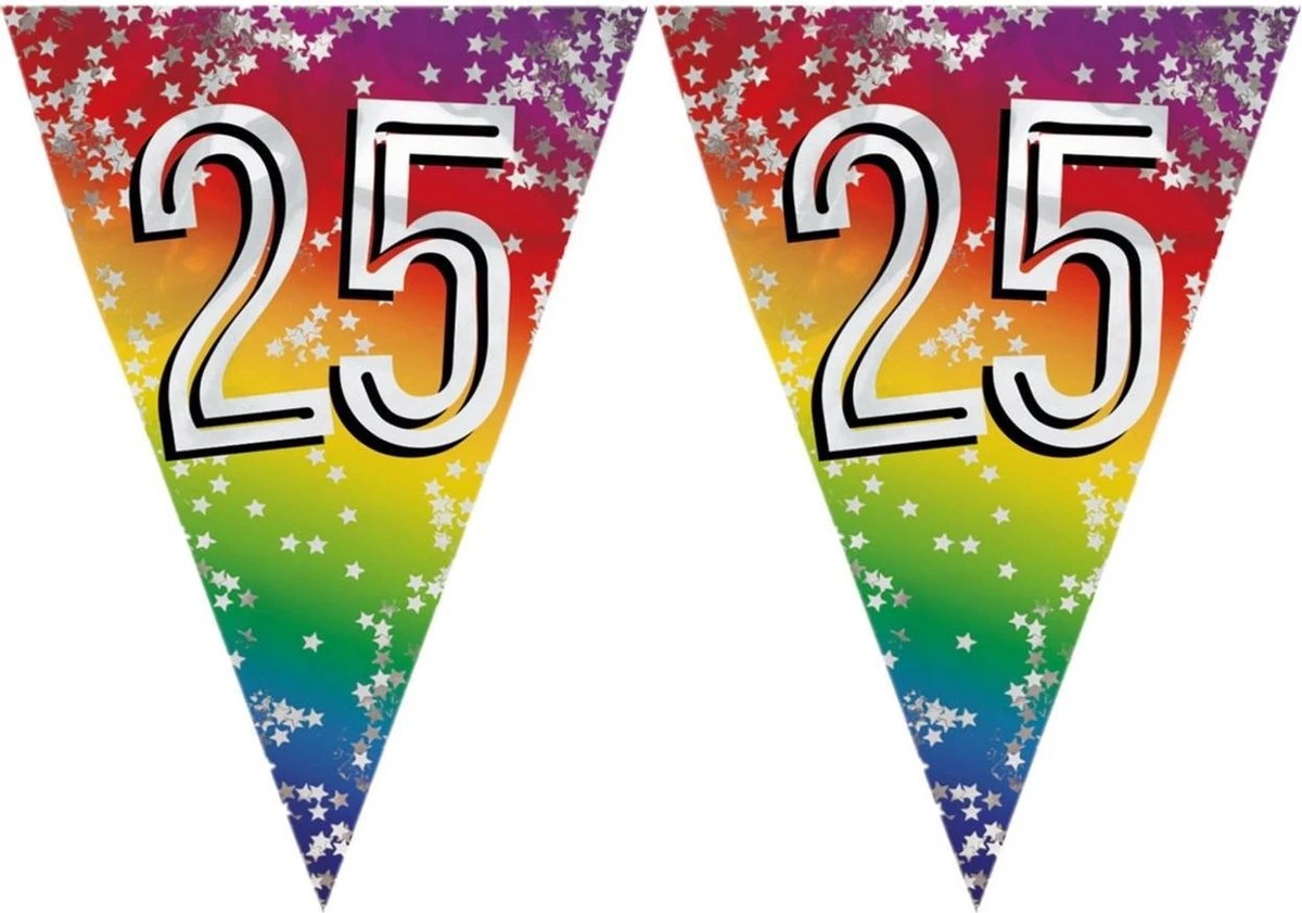 Boland 3x Morceaux De Drapeau Ligne 25 Ans Décoration Guirlande De Drapeaux 6 Mètres – Feuille Glitter – Usage Intérieur/extérieur