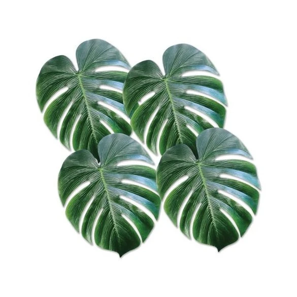 4 Décos en forme de feuilles 33cm pour déco thème exotique