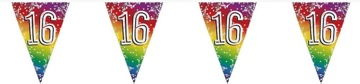 Boland 5x Morceaux De Ligne De Drapeaux 16 Ans Décoration Guirlande De Drapeaux 6 Mètres – Feuille Glitter – Usage Intérieur/extérieur
