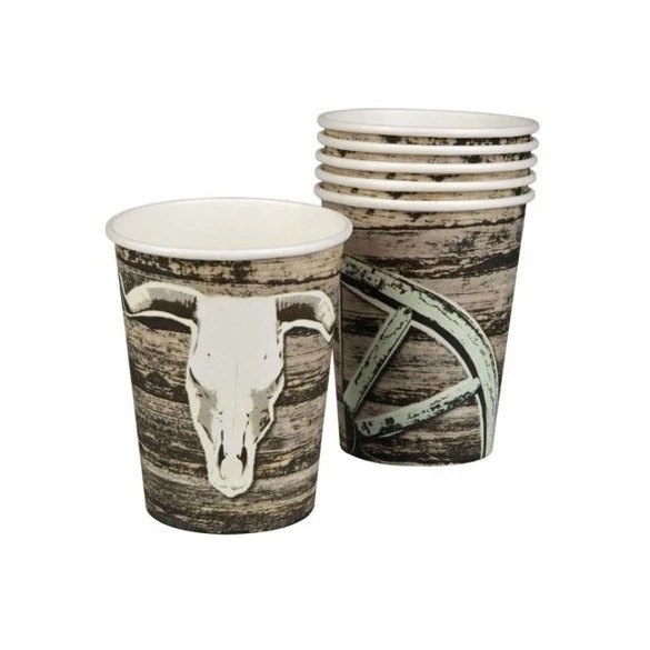 6 gobelets 25cl en carton décorés d’une tête de buffle pour vos décos à thème western