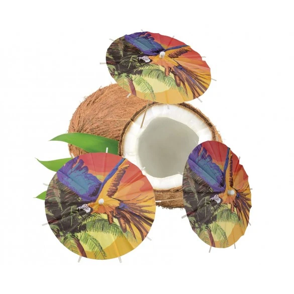 6 ombrelles thème hawai avec motif perroquet pour garnir vos glaces ,buffets sur le thème hawai