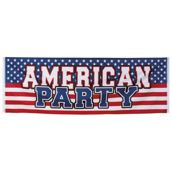 Pour votre soirée à thème USA cette Bannière « American Party » usage intérieur/extérieur