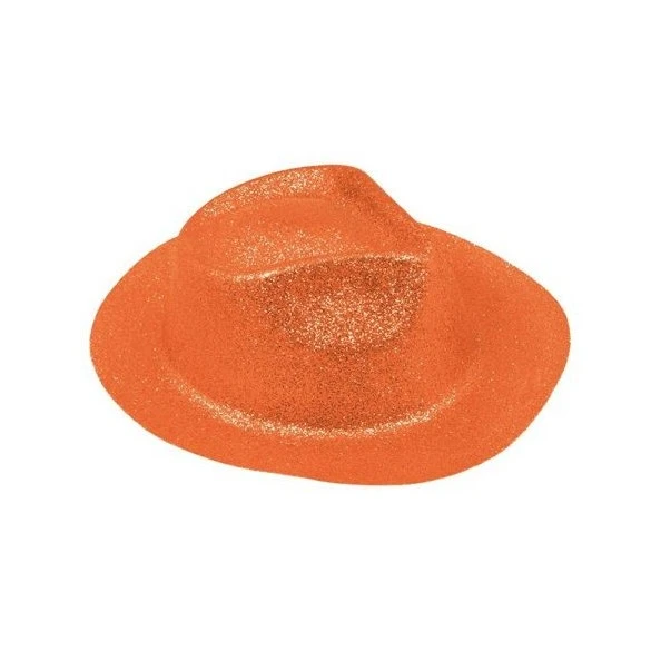 Chapeau borsalino de taille adulte.Pailleté orange fluo.Idéal pour décos de fêtes ou spectacles,soirée fluo