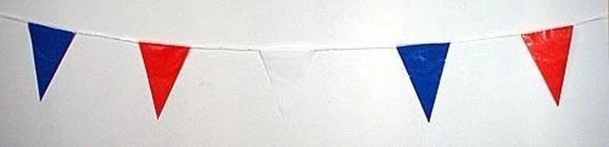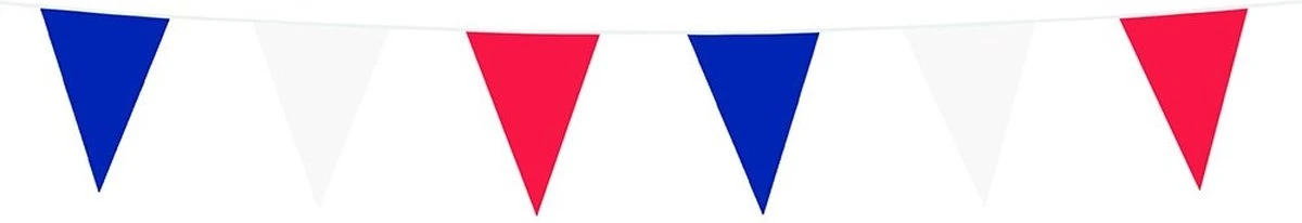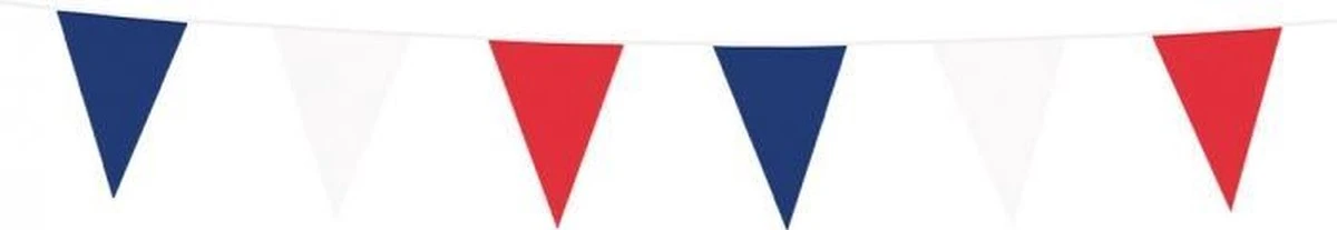 La guirlande mesure 10 mètres de long avec 20 drapeaux en plastique rouge, blanc et bleu. Les drapeaux mesurent environ 21 cm de large et 30 cm de haut. Avec cette guirlande, vous pouvez décorer la pièce aux couleurs hollandaises en un instant! Indispensable pour un Championnat d’Europe, une Coupe du Monde, le Jour du Roi ou le Jour de la Libération!