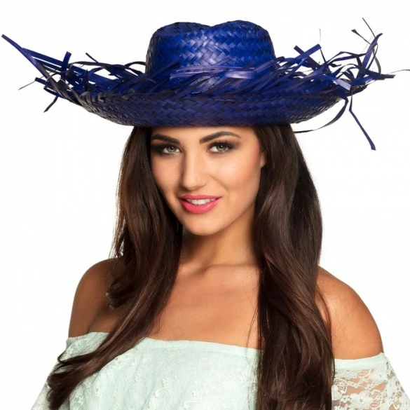 Chapeau de paille bleu pour adulte pour ambiancer vos soirées à thème Hawaïenne ou vos soirées d’été entres amis !