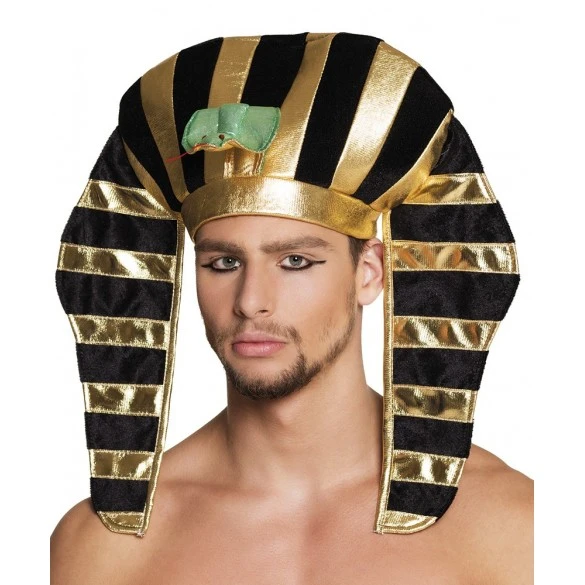 Coiffe de pharaon Egyptien en tissu noire et or pour vos déguisements sur l’Egypte