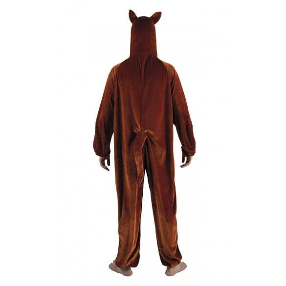 Costume composé d’une combinaison taille adulte en peluche avec tête intégrée, fermeture zip.