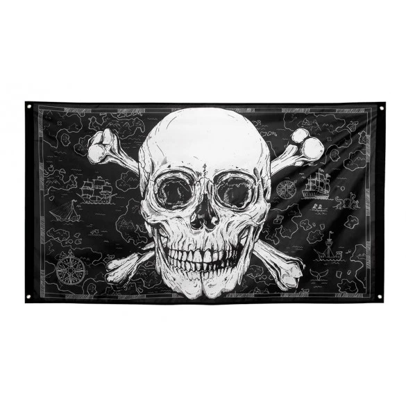 Pour décorer pour une soirée à thème pirate ou pour Halloween ,ce drapeau de pirate en tissu avec impression tête de mort réaliste.