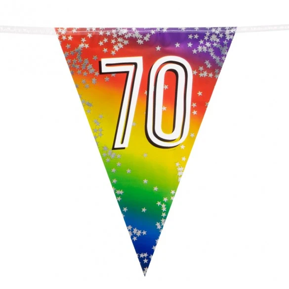 Pour vos dĂ©cos dâanniversaire ,cette guirlande fanion avec age 70ans donnera un cĂŽtĂ© festif Ă votre dĂ©co.