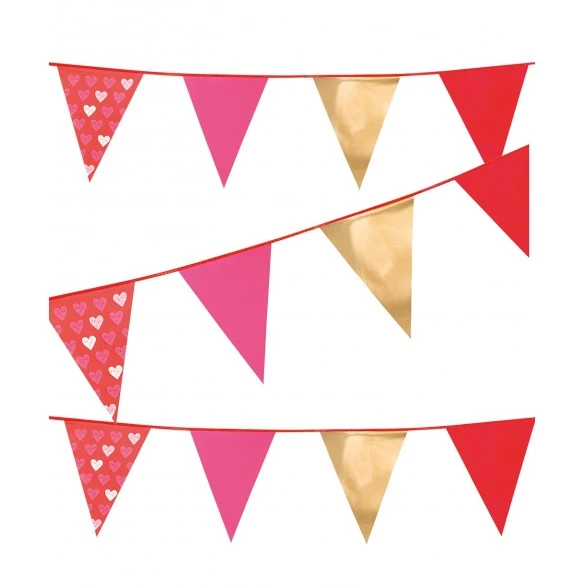Guirlande pavillons en plastique unis et motifs petits coeurs idéale pour décorer pour la Saint Valentin ou un mariage