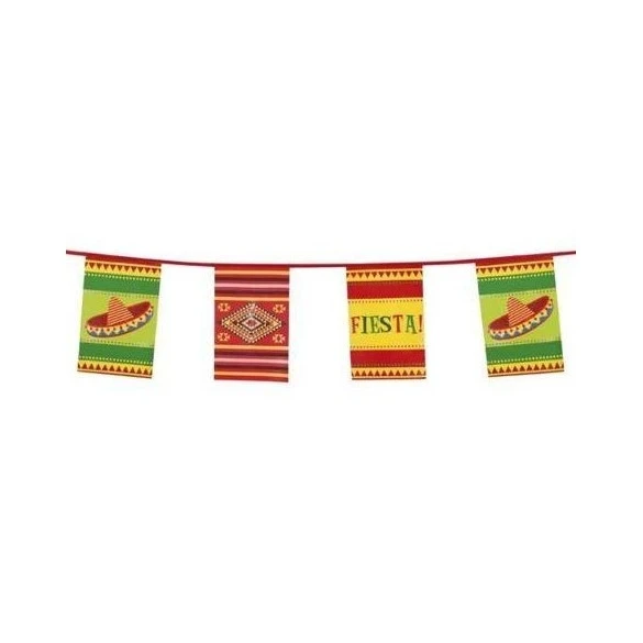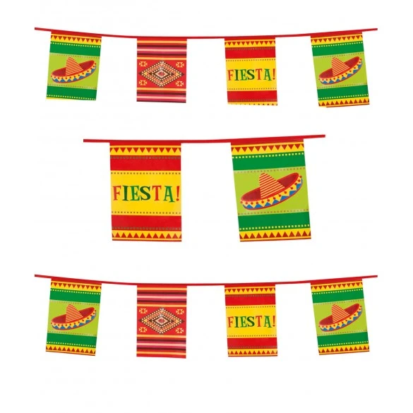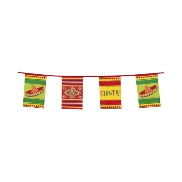 Guirlande de fanions rectangulaires 23cm par 35cm décorés sur le thème latino mexique