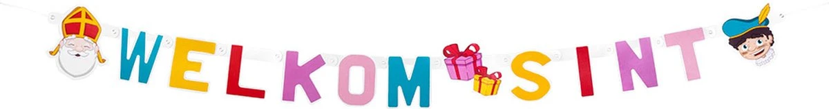Guirlandes de lettres Saint Bienvenue 150 cm. Guirlande de lettres colorées de karton avec le texte: Bienvenue Saint Nicolas et cadeaux. Complétez votre fête Sinterklaas avec cette guirlande. Longueur: 150 cm. Matière : carton. Quantité: 1x pcs. Décoration de fête de bienvenue Sinterklaas.