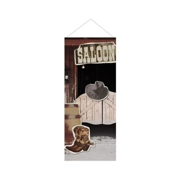 Grand bannière western verticale montée sur deux baguettes en bois + cordelette pour suspendre.Décorée avec motif western