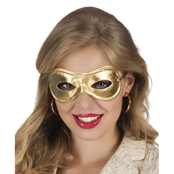 Loup de couleur or métalisé, livré avec élastique à nouer pour compléter un déguisement de marquis, marquise. Idéal pour Carnaval ou bal masqué.