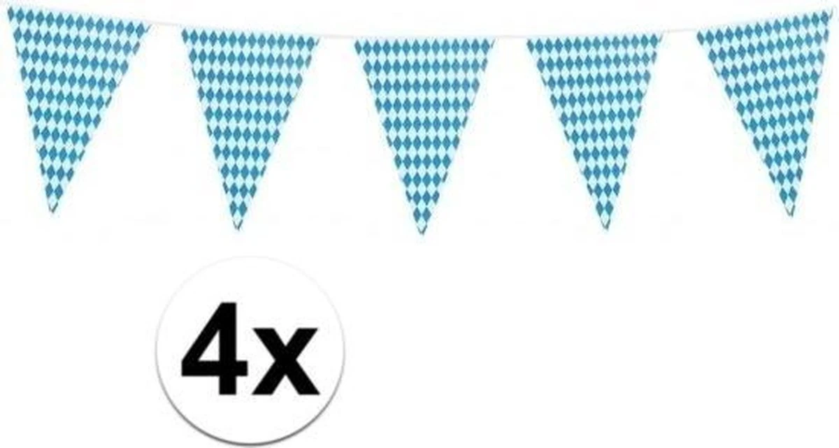 4x lignes drapeau Bavière XL 8 mètres. Ces lignes de drapeau, avec de très grands drapeaux, mesurent environ 8 mètres de long et sont en plastique. Les drapeaux sur les lignes du drapeau mesurent environ 30 x 45 cm! Vous recevrez 4 pièces. Fête de la bière / Drapeaux de décoration à thème Oktoberfest.