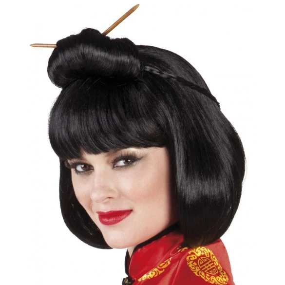 Pour complèter votre déguisement de chinoise ou manga ,cette superbe perruque livrée avec les batonnets