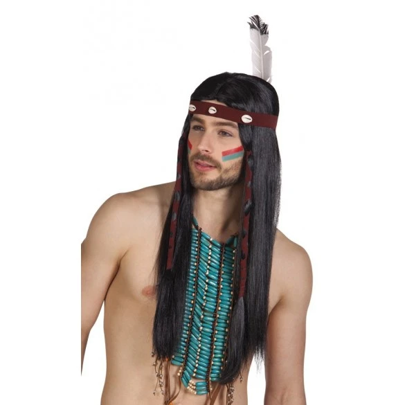 Pour une soirée far west, déguisez-vous en indien et choisissez de porter cette perruque aux longs cheveux bruns avec bandeau et plumes. Perruque pour homme. Les cheveux sont synthétiques et fixés sur une charlotte élastiquée pour un meilleur maintient sur la tête !