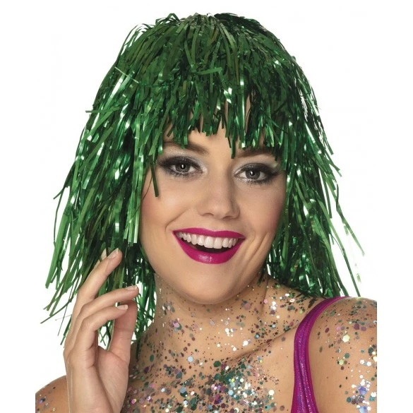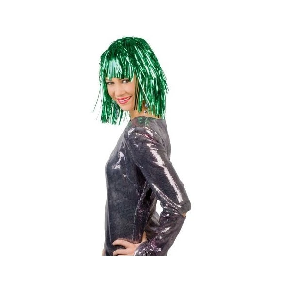 Perruque brillante à franges en plastique brillant de couleur verte