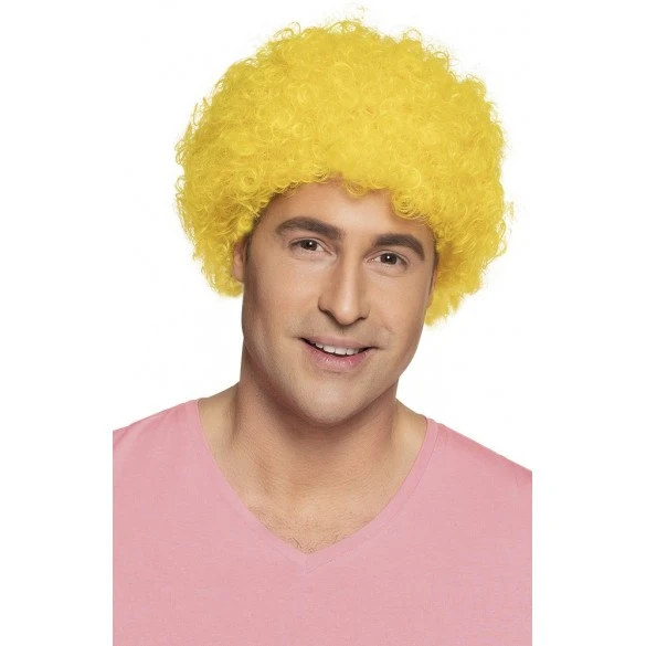 Perruque bouclée jaune pour une tenue de supporter , un déguisement disco ou de clown